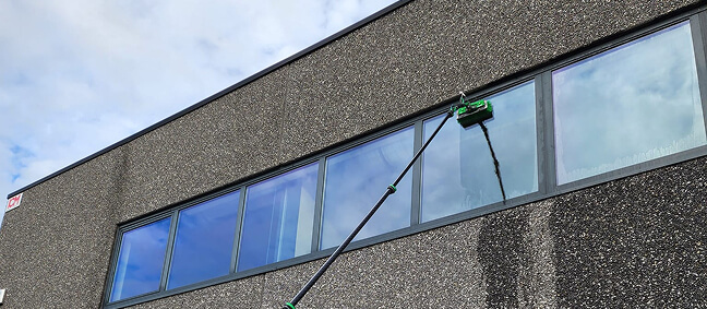 Grâce à un équipement adapté, tel que des perches de 8 mètres, nous intervenons en toute sécurité pour un résultat impeccable, même en hauteur.